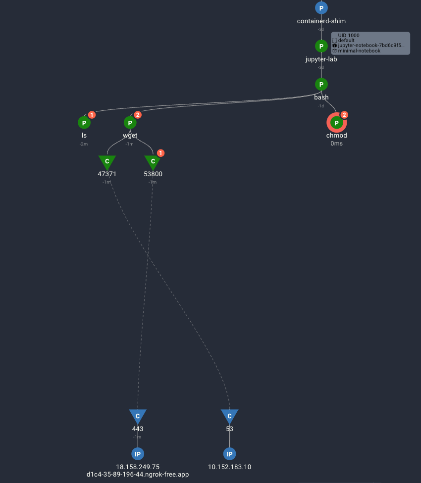 The Spydertrace captured the early activity of the Red Team, finding a vulnerable Jupyter server and successfully running the Silent Bob exploit, they had access to a shell inside the container.