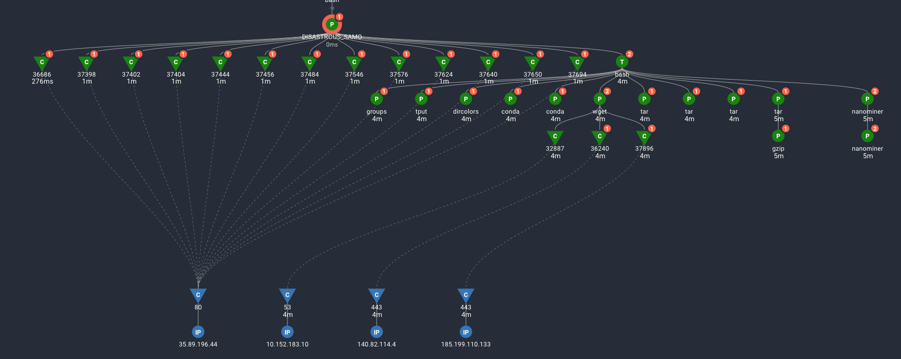 - The wget and chmod processes are suspicious and linked to known MITRE ATT&CK techniques.